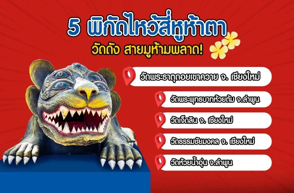 มาถึงส่วนที่ทุกคนรอคอยกันแล้ว! น้องสมหวังได้รวบรวมพิกัดวัดดังที่สามารถไปกราบไหว้ขอพรองค์สี่หูห้าตา มาให้แล้วครับ ใครสะดวกที่ไหน ปักหมุดแล้วไปตามกันได้เลย!