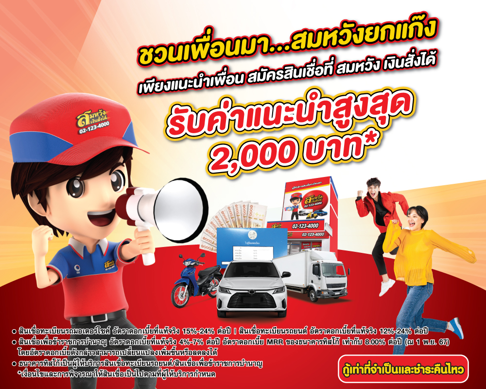• สินเชื่อทะเบียนรถยนต์ อัตราดอกเบี้ยที่แท้จริง 12%-24% ต่อปี