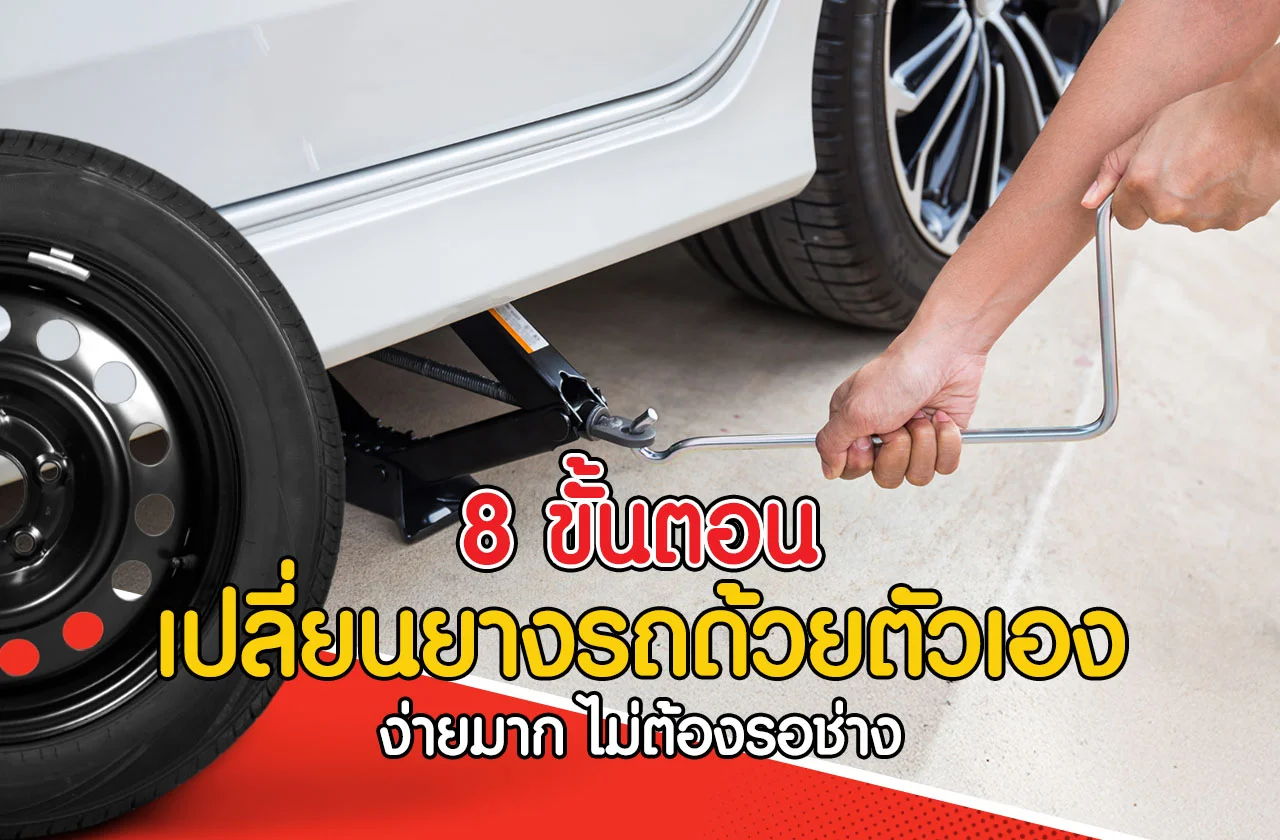 ขั้นตอนเปลี่ยนยางอะไหล่ด้วยตัวเองง่าย ๆ ไม่ต้องรอช่าง ตั้งแต่จอดรถให้ปลอดภัย การใช้แม่แรง จนถึงขันน็อตให้ถูกต้อง ทำตามได้เลย