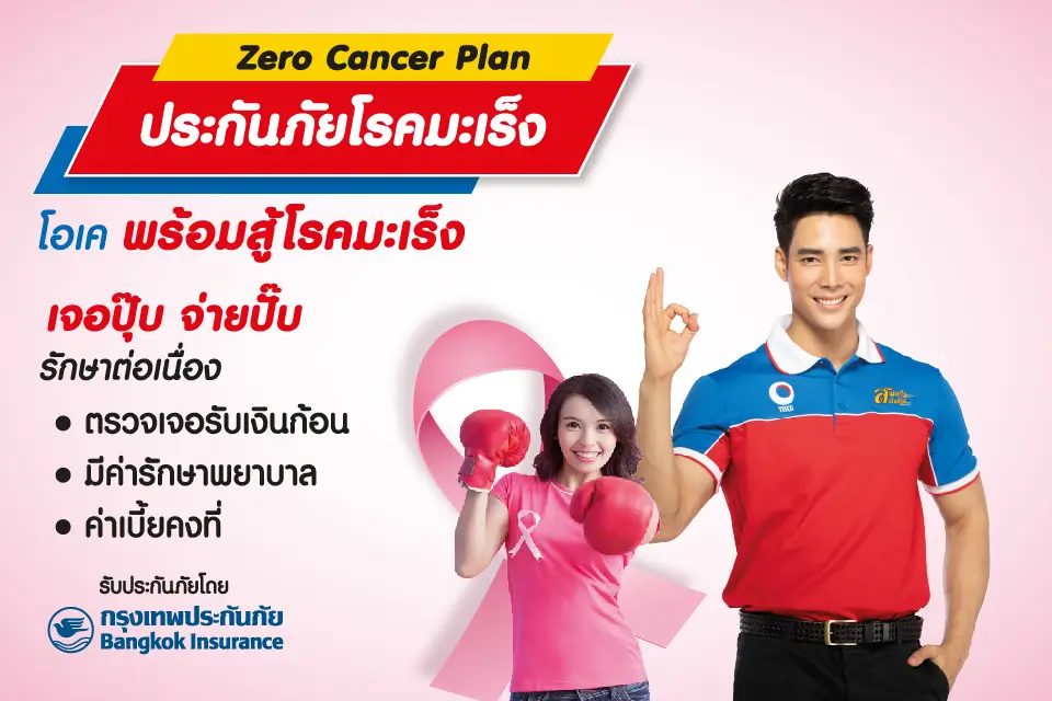 หมดห่วงเรื่องโรคมะเร็ง ด้วยประกันภัยโรคมะเร็ง เจอปุ๊บ จ่ายปั๊บ รักษาต่อเนื่อง ค่าเบี้ยคงที่ ไม่ปรับขึ้นตามอายุ เริ่มต้นเพียง 2.xx บาทต่อวัน