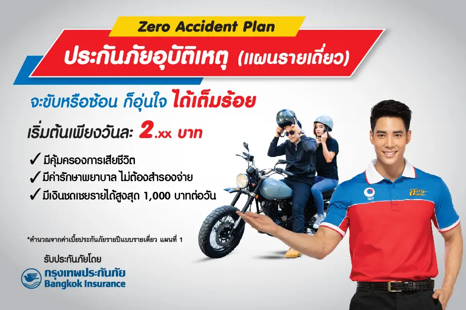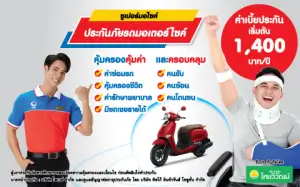 คุ้มครองทั้งรถมอเตอร์ไซค์และคุณ โดยมีค่ารักษาพยาบาลจากอุบัติเหตุ + ค่าชดเชยรายได้ ต่อวัน กับค่าเบี้ยเริ่มต้นเพียง 3.xx บาทต่อวัน