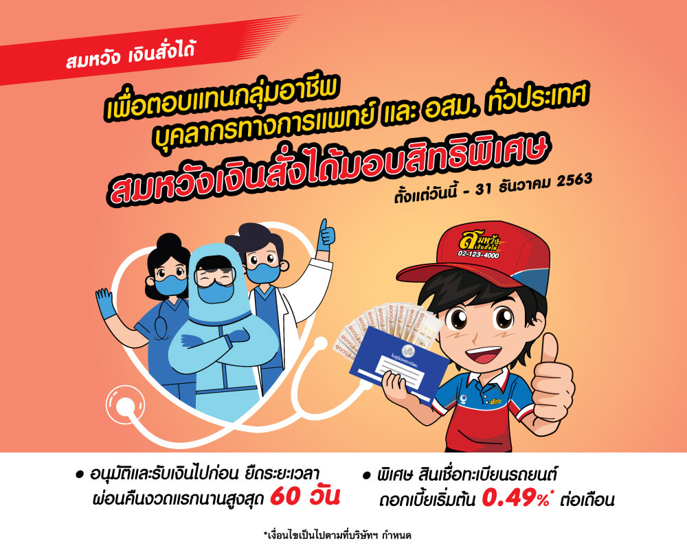 พิเศษ!!! สินเชื่อทะเบียนรถยนต์ ดอกเบี้ยเริ่มต้น 0.49% ต่อเดือนพร้อมรับวงเงินกู้ไปใช้ก่อน และยืดระยะเวลาผ่อนคืนงวดแรกนานสูงสุด 60 วัน