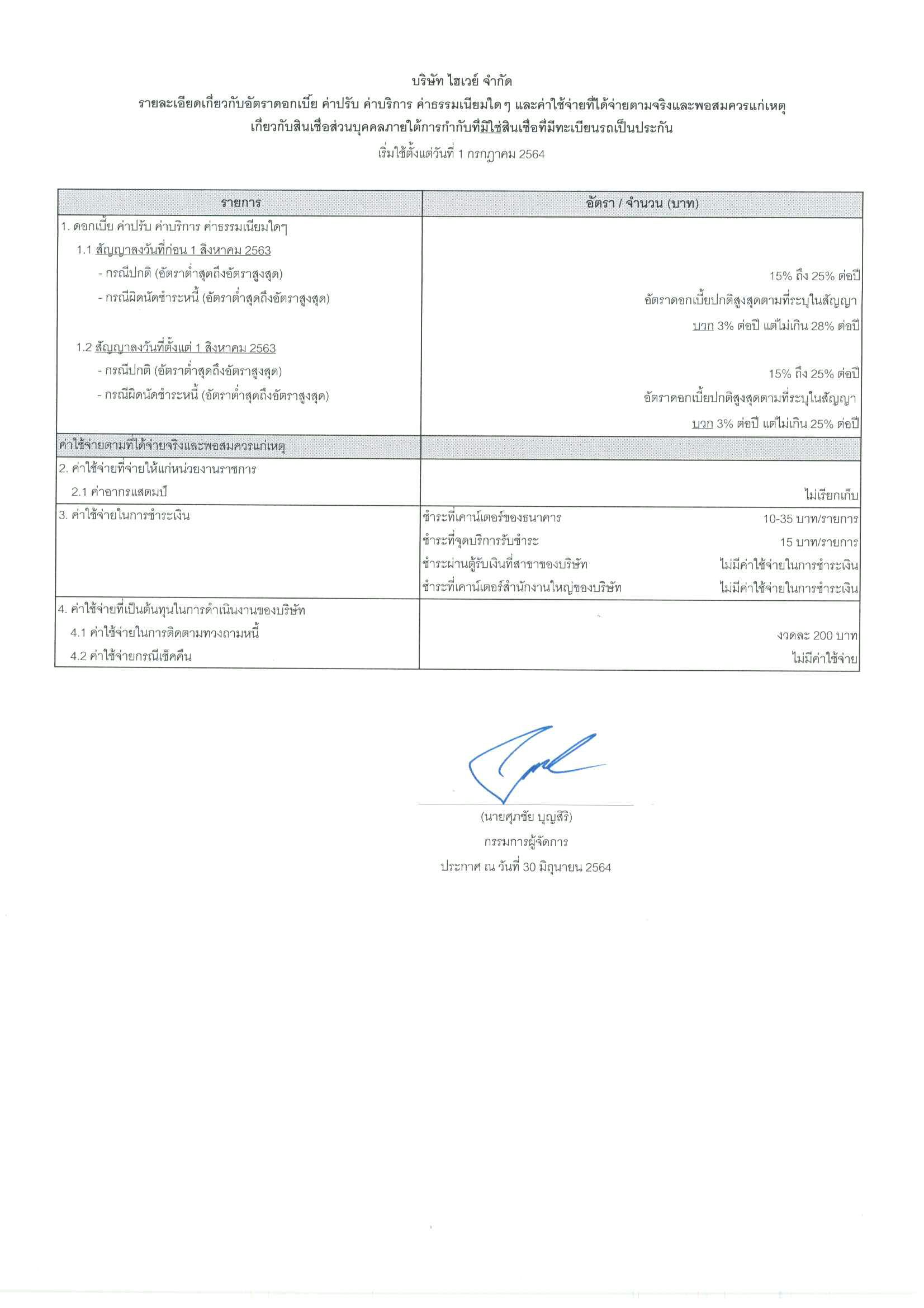 - อัตราค่าธรรมเนียมและค่าบริการที่เกี่ยวข้องกับธุรกิจเช่าซื้อรถจักรยานยนต์ (อัพเดท 1 ก.ค. 2561)